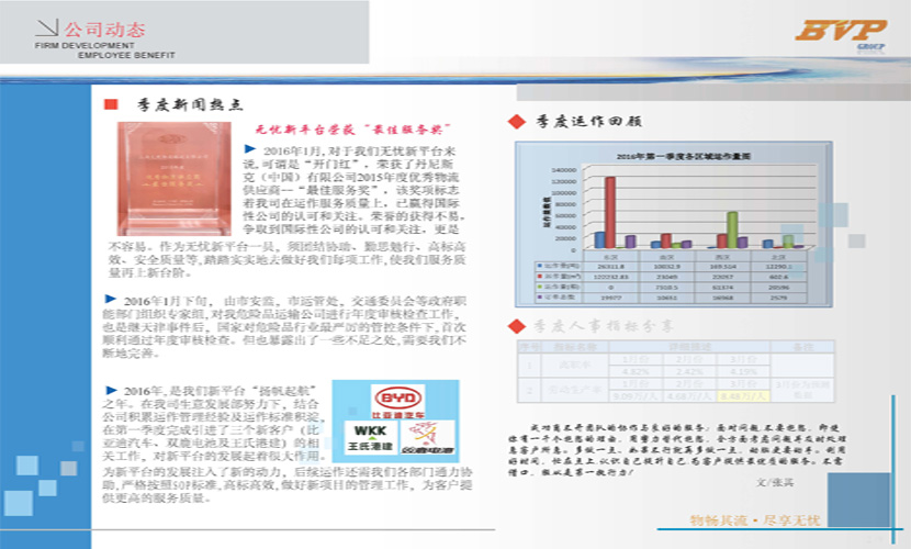 凭借我们的专业能力及服务意识,为客户提供超值的一体化物流服务;并不断地创新服务内容,使客户始终能够体验“安全、及时高效、优质”的无忧品质!